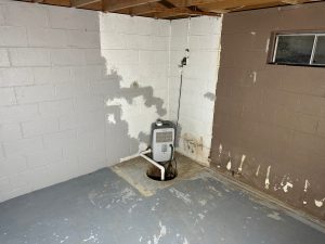 When the ground in Martinsville becomes saturated with spring rain, the water creates “hydrostatic pressure.” This pressure is strong enough to push water upward through the cove joint and even through microscopic cracks in the concrete floor slab itself.