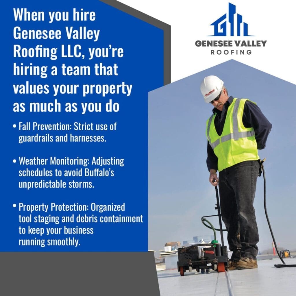 Buffalo, NY – Genesee Valley Roofing LLC, a leading provider of commercial roofing solutions in Western New York, is showcasing its dedication to workplace safety and property protection during roof repairs, replacements, and maintenance. As trusted commercial roofing contractors in Buffalo, NY, the company emphasizes professional practices that prevent accidents while supporting business continuity for property owners and facility managers.