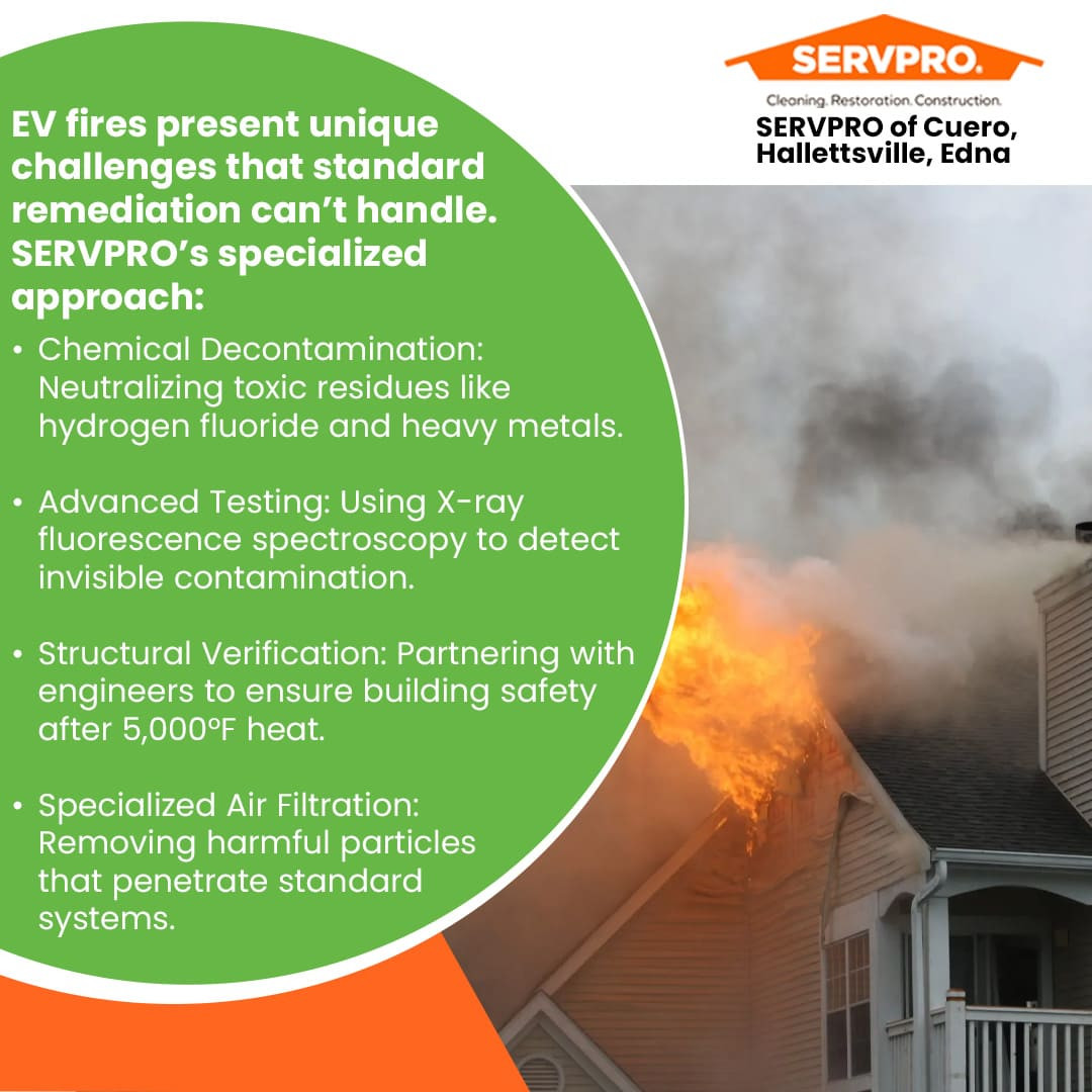 SERVPRO of Cuero, Hallettsville, Edna assists clients with post-restoration safety upgrades, connecting them with qualified contractors who understand EV infrastructure requirements and fire prevention strategies specific to battery technology.